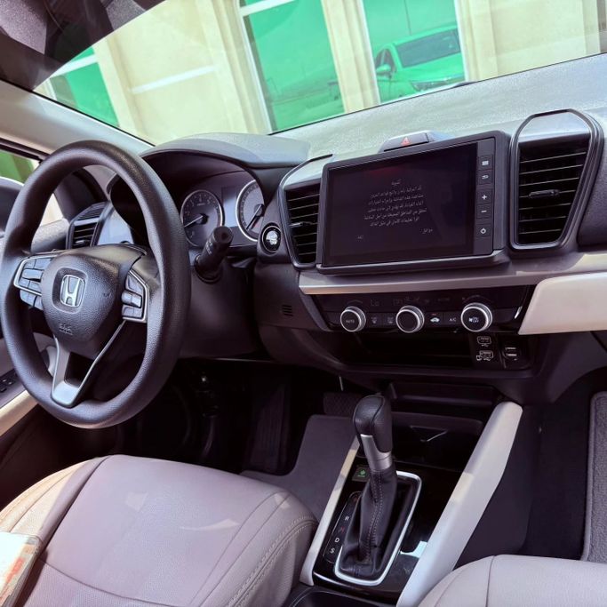 Honda City Khaliji Model 2022 Leather seats + fingerprint playback Anti-skid + ECO system Cruise control + electric steering Rear camera + remote operation USB + Bluetooth input Two agency keys 150,000 km walk AED 39,000 is required Ready to register Exportable