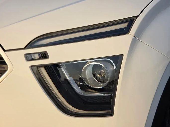 This 2021 Hyundai Creta II is a white, five‑door SUV with a 1.6-liter petrol engine delivering 121 horsepower. It’s paired with an automatic transmission and all-wheel drive, offering steady performance across urban streets and light off‑road conditions. With GCC specifications, the car aligns with regional market expectations and equipment sets. It has had a single previous owner and currently shows around 109,000 kilometers on the odometer. On the road, the 1.6 engine and automatic transmission provide smooth acceleration and a comfortable ride, while the AWD system adds