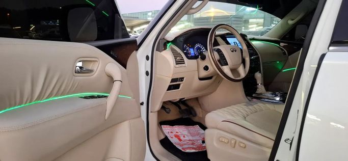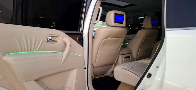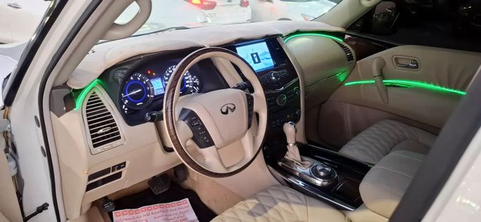 The Infiniti QX56 II is a full-size SUV finished in white that combines spacious, comfortable seating with strong on-road presence. This used GCC-spec model is powered by a 5.6-liter V8 delivering 405 horsepower, paired with all-wheel drive and an automatic transmission for confident power delivery in varied conditions. It offers a substantial, refined chassis feel and a capable ride that suits daily driving and longer trips, while the cabin provides generous space and a premium ambience typical of Infiniti models from this era. With a single-owner history and 295,648 kilom
