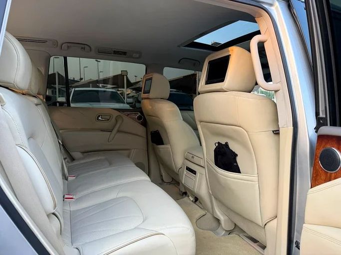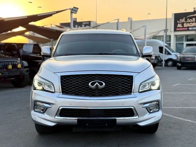 Infiniti QX80 2016 model, Gulf, full option, top specifications, original paint, in original condition, five cameras, radar, blind spot, cruise control, lane keep assist, heated and cooled electric seats, leather seats, mileage 136,000 km only