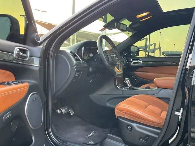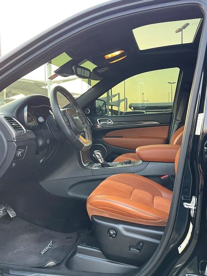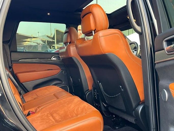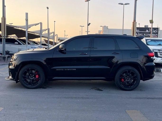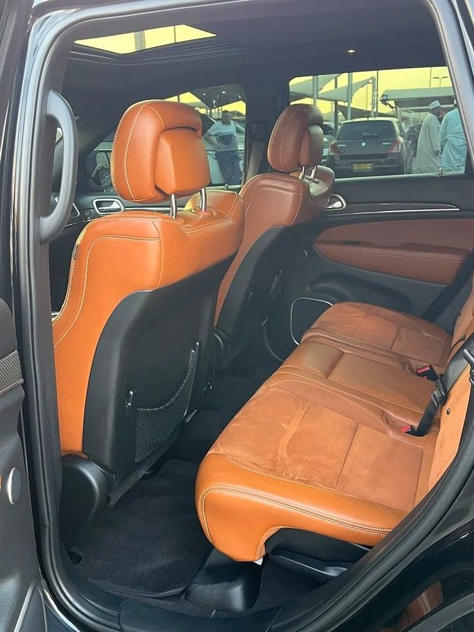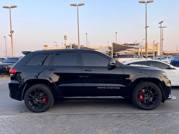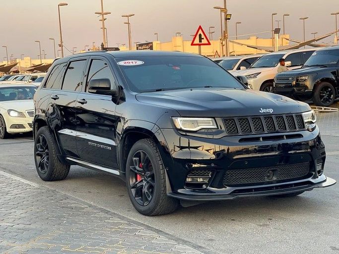 For sale: 2017 Grand Cherokee SRT, Gulf specifications, 6.4L V8 engine, fully serviced with agency-installed modifications. Located at Sharjah Al Haraj, Souq Al Haiba, Exhibition No. 162. No final expenses required. Mileage: 162,000 km. Price: AED 95,000.