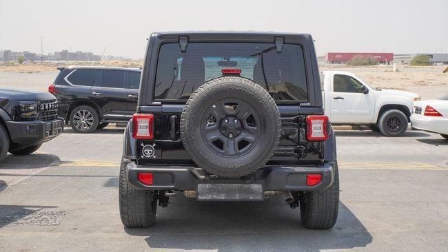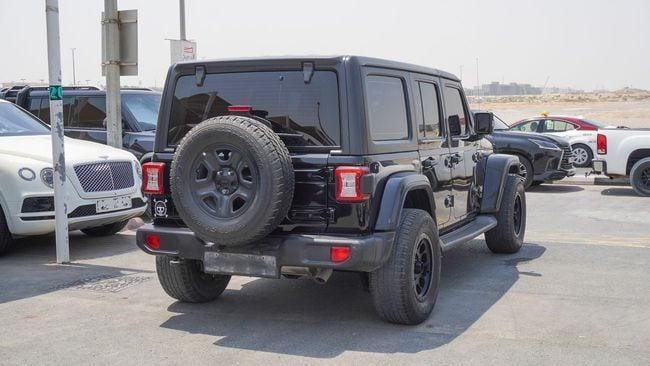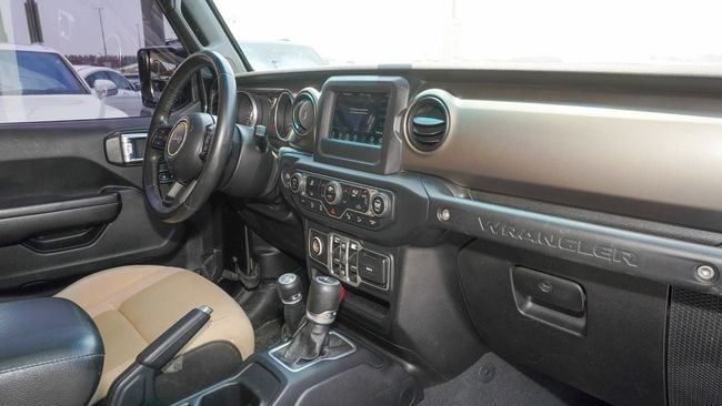 Pre-owned Jeep Wrangler Unlimited Sport for sale in Sharjah. Black 2018 model, available at Al Nujoom Al Malakiah Used Cars. This car has automatic transmission, 6 cylinders, 17″ wheels and beige interior. 235,000 km, GCC specs.