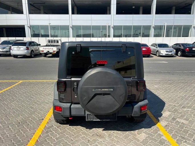 The 2018 used Jeep Wrangler JL features a three-door body and a sleek black finish, combining the character of an SUV with modern convenience. Under the hood is a 2.0-liter gasoline engine producing 272 hp, paired with an automatic transmission. All-wheel drive (AWD) provides a confident grip on and off the roads. This vehicle conforms to GCC specifications and has had one owner, with a mileage of about 100,000 km. The Wrangler retains recognizable design features, including a sturdy body, an expressive front end, and dark paint, making it stylish and practical for both cit