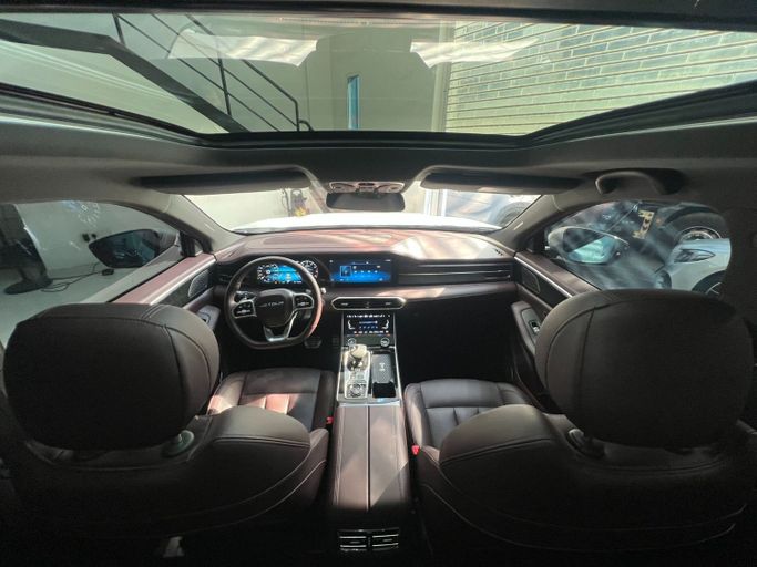 This 2024 Jetour X90 PLUS in white is a five-door SUV powered by a 2.0-liter petrol engine delivering 244 hp, paired with an automated manual transmission. With front-wheel drive, it offers everyday practicality and steady performance for city and highway driving. This GCC-spec model is geared to regional conditions, and the one-owner vehicle has 71,000 km on the clock, suggesting a well-maintained, ready-to-use crossover. Inside, the cabin prioritizes comfort and usability with a straightforward layout and modern touches that support daily commuting and family trips. Overa