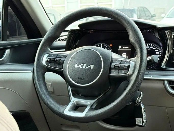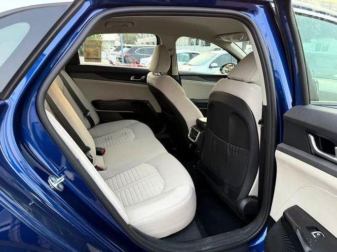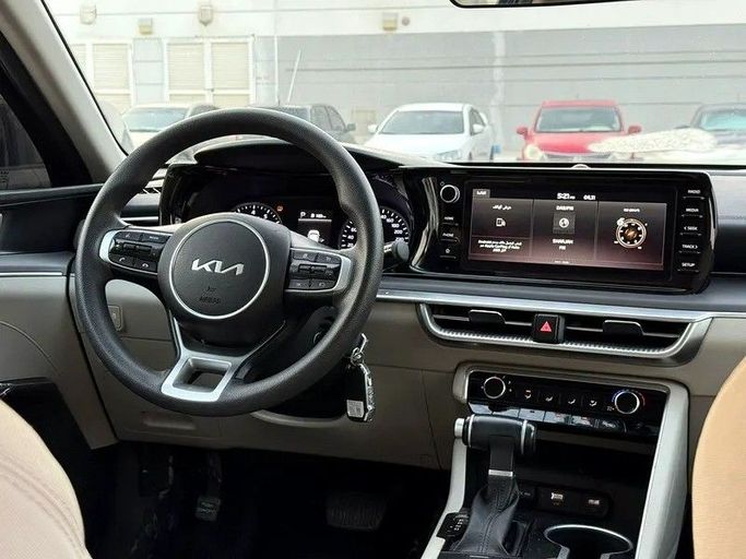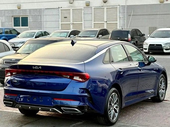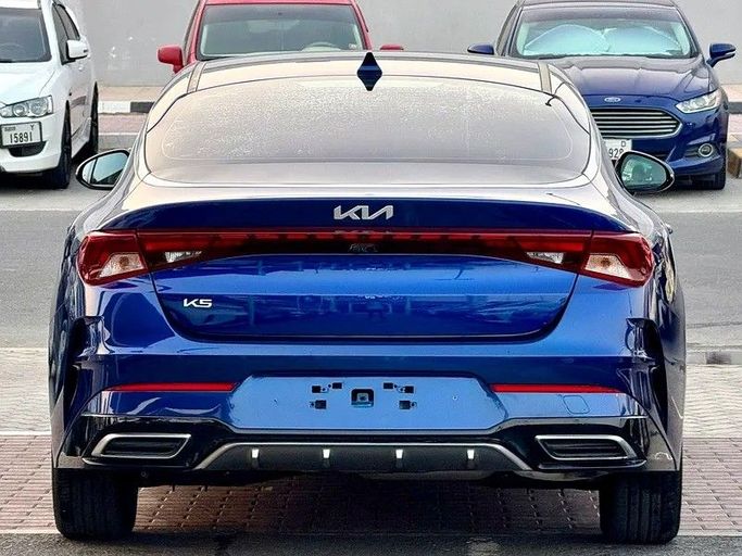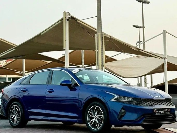 The 2023 Kia K5 GDI EX sedan in a striking blue finish presents a contemporary, well-proportioned silhouette. This used example is one-owner and GCC-spec, powered by a 2.5-liter petrol engine developing 191 horsepower, paired with an automatic transmission and front-wheel drive for a balanced, smooth daily drive. No expenses required. Clean inside and out. Features include: Fog lights, alloy wheels with rear parking sensors, parking camera, full steering wheel controls, and a screen with Bluetooth. With 72,000 kilometers on the odometer, the car sits at a practical milea