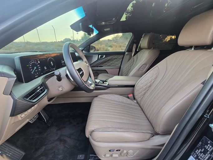This 2024 Kia K8 sedan blends refined design with efficient hybrid performance, presenting a sleek black silhouette that suits everyday drives and longer journeys alike. With a 1.6‑liter hybrid powertrain paired to a smooth automatic transmission and 230 horsepower, it delivers a balanced mix of responsive acceleration and fuel efficiency, while front-wheel drive supports confident handling in varied conditions. Inside, the cabin emphasizes comfort and modern technology, offering a well-appointed space for daily use, quiet highway cruising, and practical seating for five. B