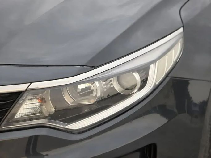 2018 Kia Optima sedan in a sleek grey finish, powered by a 2.0-liter turbo engine delivering 245 horsepower. The combination of an automatic transmission and front-wheel drive offers smooth response for everyday driving and confident highway overtakes. This Optima was prepared for GCC markets, aligning with regional specs while maintaining a refined ride. Its balanced performance suits both daily commuting and longer trips. With a single previous owner and 107,000 kilometers on the clock, the car presents a practical choice for those looking for a well-kept, mid-size sedan