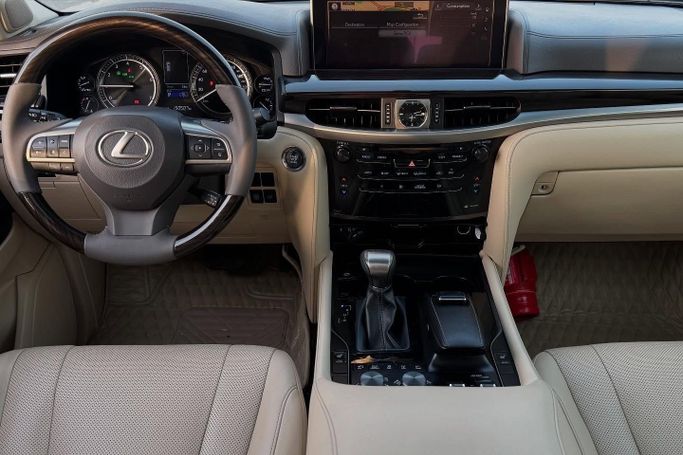 Lexus LX570 2020 GCC For sale: 2020 Lexus LX570 in excellent condition. Serviced at an official dealership, no accidents, first category full package. - Black exterior - Light beige leather interior - Three multimedia system screens - Five-camera video monitoring system - Radar sensors - Panoramic sunroof - Seats with cooling and heating functions - Automatic lane-keeping assist - Power liftgate and fuel cap release - Heated and ventilated seats - Adjustable rear seats - Night navigation system - Hydraulic suspension - Blind spot detection system - Front and rear parking