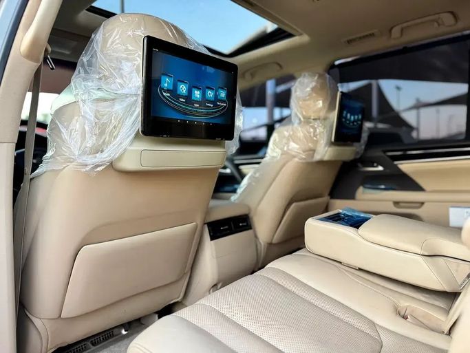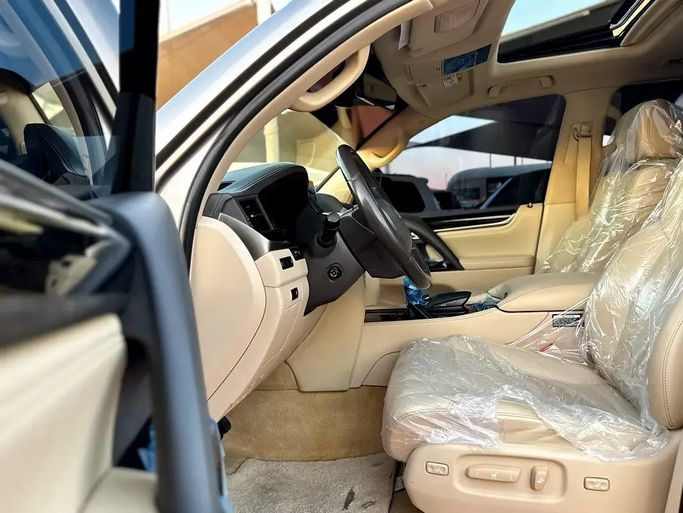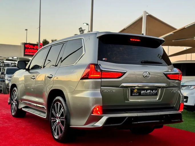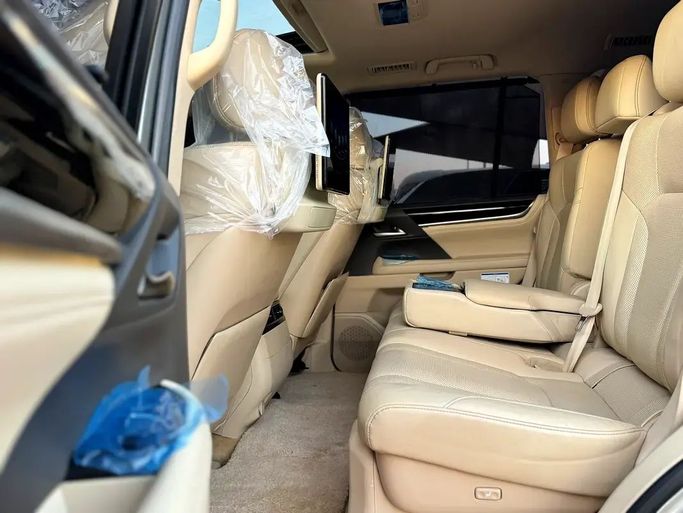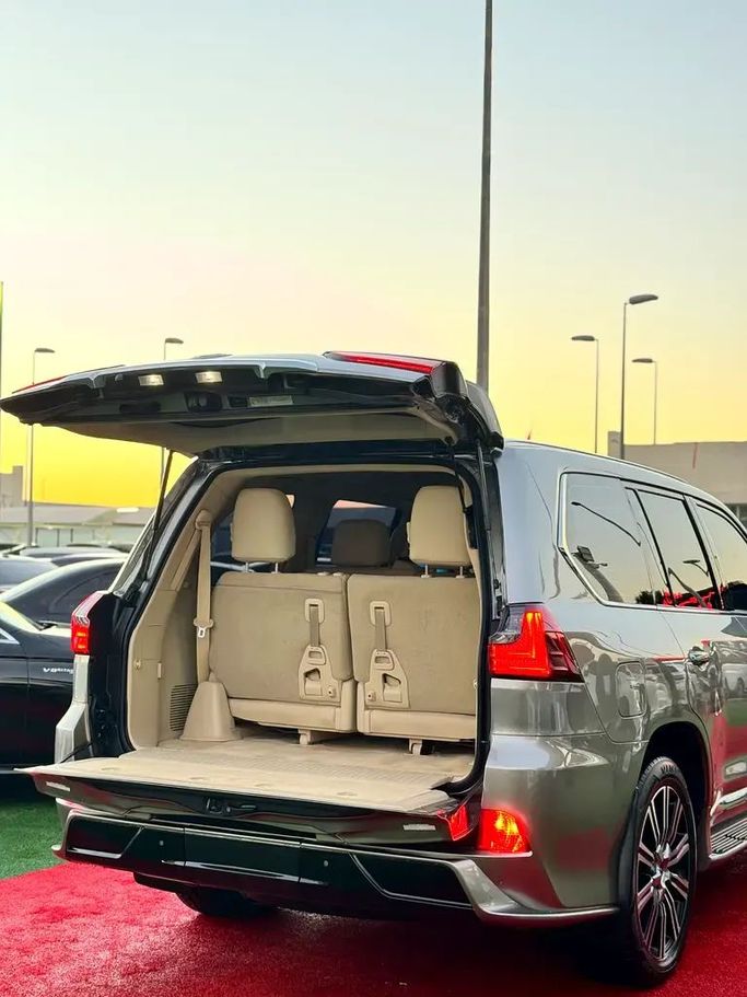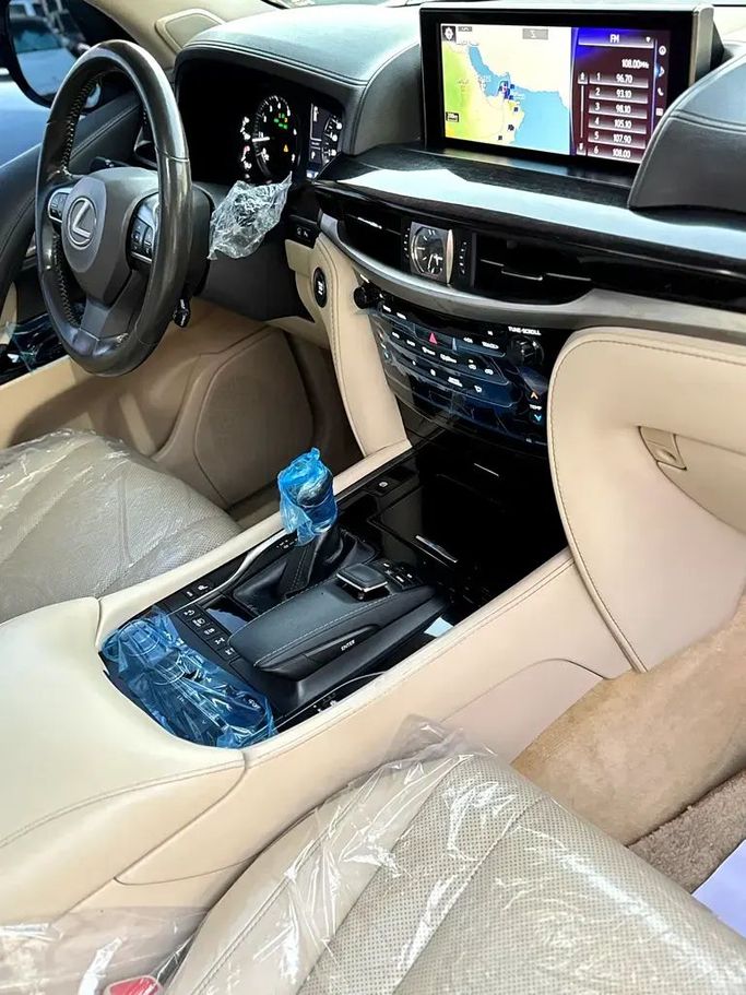 Lexus LX 570 Signature Gulf Specs. Full option (automatic transmission, 8-cylinder engine, 4WD, sunroof, blind spot monitoring, lane departure warning, keyless entry, steering wheel controls, push-button start, cruise control, traction control, refrigerator, front and rear digital climate control, power seats, seat memory, heated and cooled seats, full suite of screens and sensors, plus standard features). 123,000 KM. 3 original keys available.