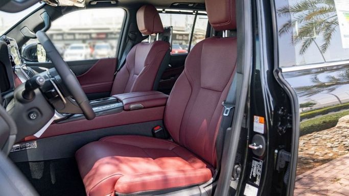Introducing the new 2023 Lexus LX, the epitome of luxury and performance in an all-wheel-drive SUV. This stunning model, part of the fourth generation of the LX series, combines elegance with rugged capability, making it suitable for both city streets and off-road adventures. With its striking black exterior, the LX stands out with a commanding presence that reflects the brand’s commitment to sophistication. Under the hood, the LX boasts an impressive 415 horsepower engine, delivering exhilarating performance powered by a smooth and responsive automatic transmission. This