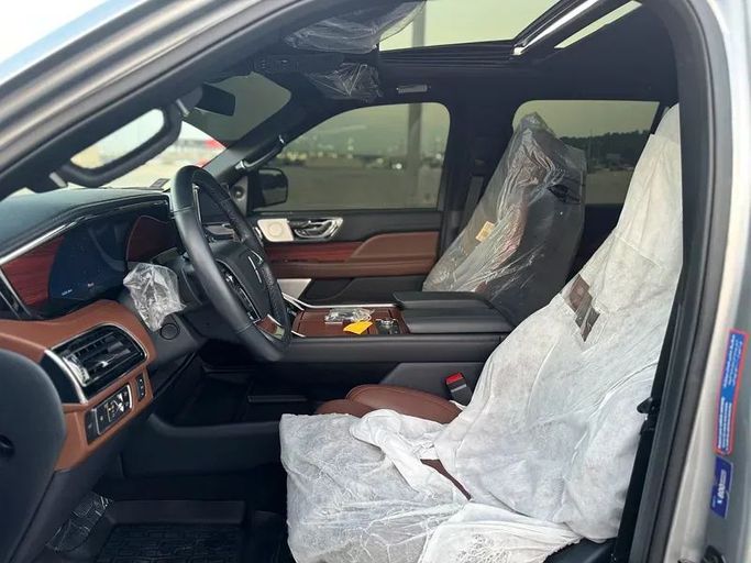 This 2024 Lincoln Navigator IV Facelift is a used five-door SUV finished in silver, powered by a 3.5-litre petrol engine delivering 415 hp and paired with an automatic transmission. With all-wheel drive for traction in a variety of conditions, it combines confident performance with a smooth, refined ride. Having had a single previous owner and around 16,000 miles, it shows light use and strong value for a well-equipped, large-capacity SUV. Inside, the cabin emphasizes comfort and quiet cruising, with generous space for passengers and luggage and a design that blends Lincoln