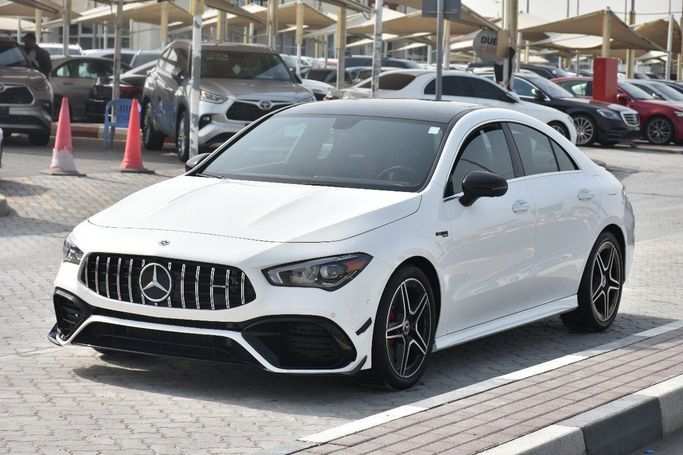 The 2023 Mercedes-Benz CLA AMG is a stunning blend of luxury and performance, designed for those who demand excellence in every drive. This particular sedan, donned in an elegant white finish, showcases the modern aesthetic that the Mercedes brand is renowned for. With only one previous owner and a modest mileage of 27,689 kilometers, this vehicle is a prime example of gently used luxury. Beneath its sleek exterior, the CLA AMG houses a powerful 2.0-liter gasoline engine that delivers an impressive 306 horsepower. This AMG performance variant is equipped with an automated