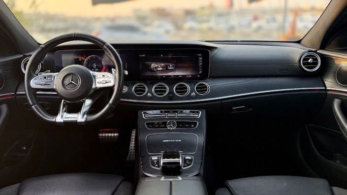 2019 Mercedes-Benz E-Class AMG sedan, W213, in silver, blends refined comfort with strong AMG performance. Under the hood sits a 4.0-liter petrol V8 tuned to 571 horsepower (63 AMG), paired with an automatic transmission and all-wheel drive for confident handling and brisk acceleration. With a single owner and 166,000 kilometers on European-spec equipment, this E-Class delivers a balanced mix of everyday usability and high-performance character. Inside, the cabin combines premium materials with supportive seating and a driver-focused layout, while the chassis and exhaust no
