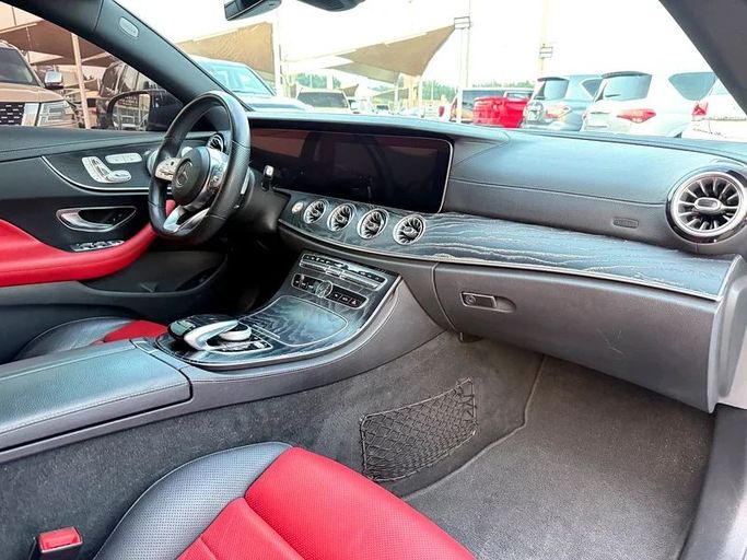 Mercedes E200 Coupe 2019 model, Gulf, accident-free, first owner from the agency, three seats, panoramic sunroof, leather seats, suction doors, AMG rims, five cameras, blind spot radar, lane keep assist
