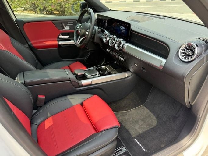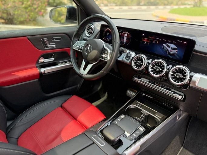 Mercedes GLB250 - 2022 Car Specifications: - Mileage: 46,000 km - Color: White with red interior - AMG Package - Night Package - 360 Camera - 68-Color Interior Lighting - Changeable Color Lighting in Air Conditioning Vents - Blind Spot System - Panoramic Roof - Full Xenon Lights - Luxurious Leather Seats - Electric Seat Control System - AMG Tires - Digital Touch Screens - Navigation System - Front Radar - Digital Meters - Customizable Display - Touch Steering Control - Cruise Control - Smart Mouse - Fingerprint Entry - Fingerprint Operation - Apple