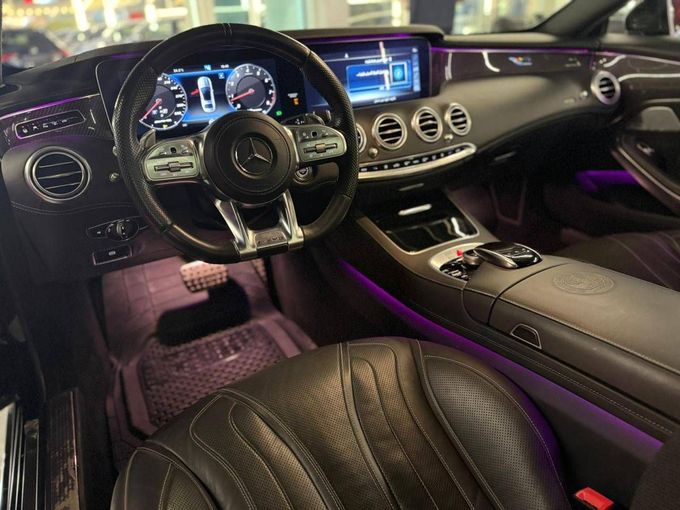 Experience the exquisite blend of luxury, power, and performance with this stunning 2019 Mercedes-Benz S-Class AMG Coupe. As a hallmark of automotive excellence, Mercedes-Benz has long been synonymous with superior engineering, unparalleled comfort, and cutting-edge technology. This particular model stands out as part of the third generation (W222, C217) facelift, encapsulating the essence of sophistication and modern elegance, designed for those who demand the best in life. Underneath its sleek black exterior, this coupe is powered by a robust 4.0-liter twin-turbo V8 engi