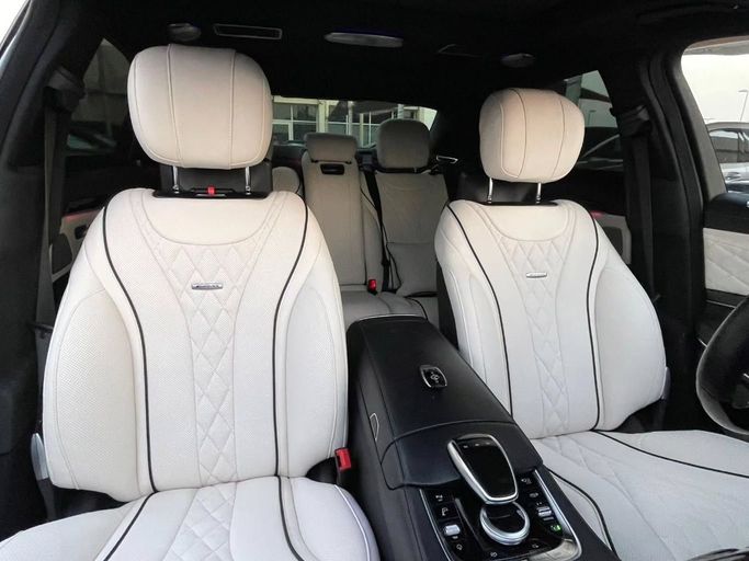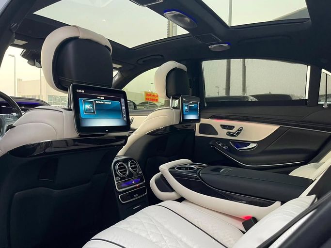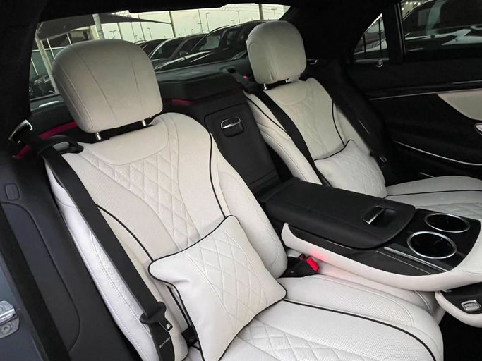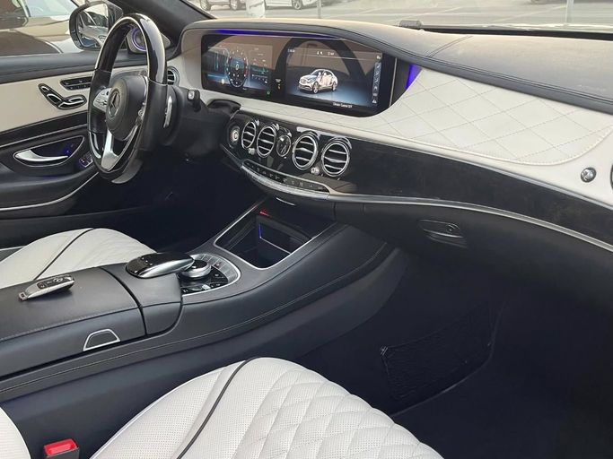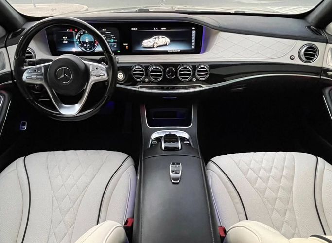 Mercedes Benz S 560 Model: 2019 Body Kit: AMG 63 Engine: - 4000 cc V8 - 463 HP Transmission: - Automatic, 9 Speeds Color: - Exterior: Gray - Interior: White American Specification Mileage: 39,400 Miles Features: - Panoramic sunroof - Digital screen - Lane Keep Assistant - Blind spot monitoring - Different drive modes (Eco, Comfort, Sport, and Individual) - 5 cameras with 360° view - Electronic hand brake - Front and rear parking sensors - Mouse control for screen features - Ambient lighting - 20-inch rims with new 2025 tires