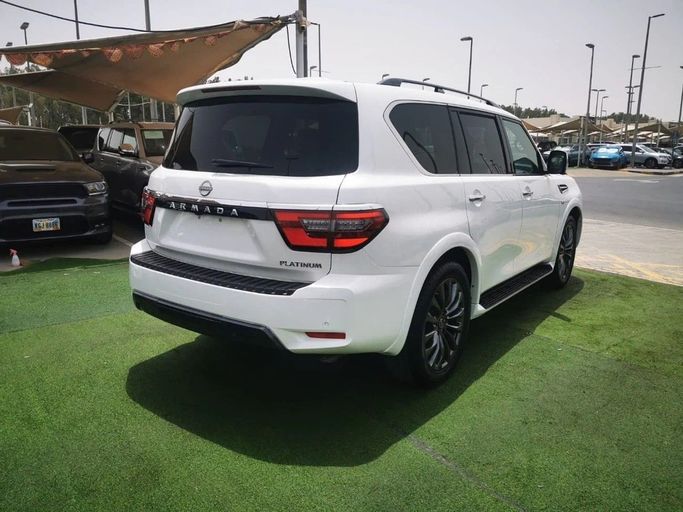 Nissan Armada Platinum The 2022 Nissan Armada is a full-size SUV known for its powerful engine, spacious interior, and towing capabilities. It features a 5.6-liter V8 engine producing 400 horsepower and a maximum towing capacity of 8,500 lbs. The Armada offers three main trim levels: SV, SL, and Platinum, along with a Midnight Edition. It received a refresh in 2021 with updated styling, including a new front end with a larger grille and C-shaped LED headlights. Interior - AUX audio input - Air conditioning - Cruise control - Leather seats - Power seats - Tuner/radio - USB