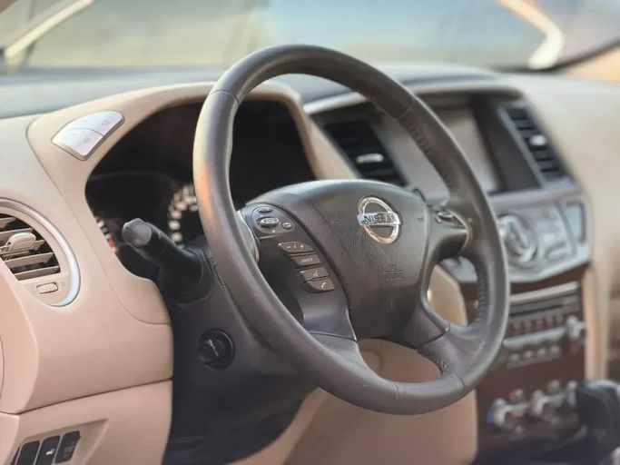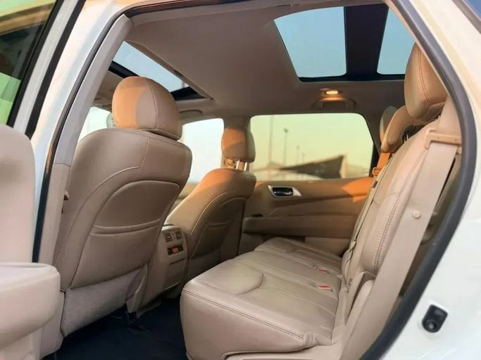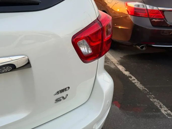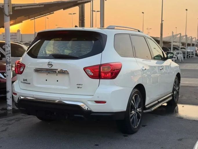 This white 2018 Nissan Pathfinder IV Facelift is a used five-door SUV powered by a 3.5-liter V6 producing 284 horsepower, paired with a continuously variable transmission. It features all-wheel drive for improved traction in varying conditions and comes with a petrol engine, offering a balanced blend of power and efficiency for daily driving and longer journeys. It has had a single previous owner and has logged around 155,000 kilometers. The drivetrain setup ensures smooth progression and confident highway cruising, with the CVT tuned to keep the engine in its efficient ra