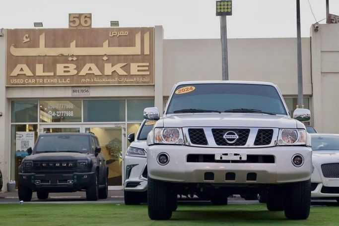 2024 Nissan Safari for sale with manual transmission. The interior is like new and the vehicle is accident-free. It comes with a full option package #1 in white color. Features include black leather interior, sunroof, limited-slip rear differential, refrigerator, and cruise control—fully loaded. Mileage: 11,000 km Price: AED 178,000 Monthly payment with down payment: AED 2,700 Monthly payment without down payment: AED 3,400 Financing options available through banks without a down payment. Special lending conditions apply for clients of Dubai Islamic Bank, First