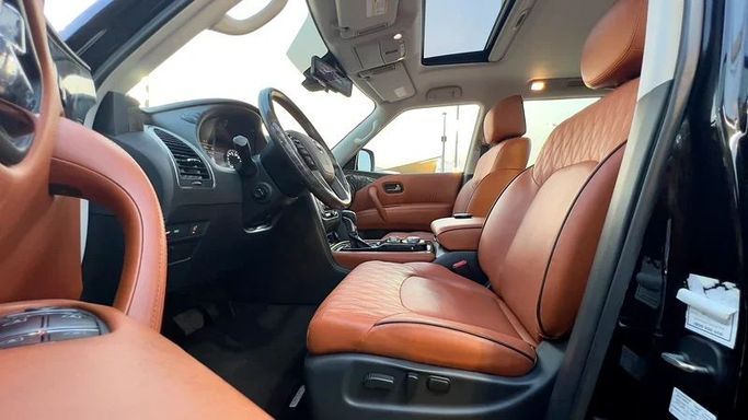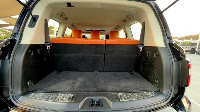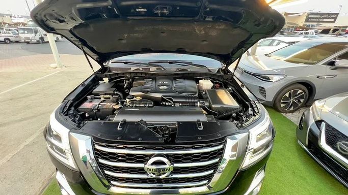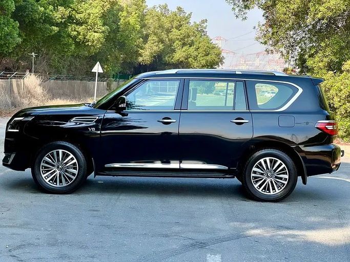 Nissan Patrol Platinum – Big Engine • GCC Specs • First owner from the dealership • Comes with 2 original keys • Model 2021 • Full service history at the agency • Accident free • No electrical or mechanical issues • One piece painted (cosmetic only) • Full option – Top of the range • Excellent condition, buy and drive This used 2021 Nissan Patrol VI (Y62) Facelift 2 is finished in black and comes as a practical 5-door SUV with all-wheel drive and an automatic transmission. Power comes from a 5.6-liter petrol V8 delivering 400 hp, providing strong, confident acceleration and
