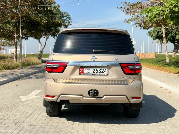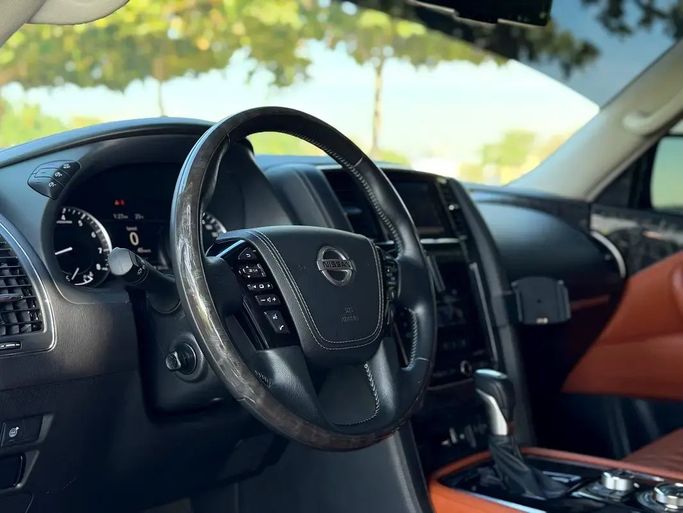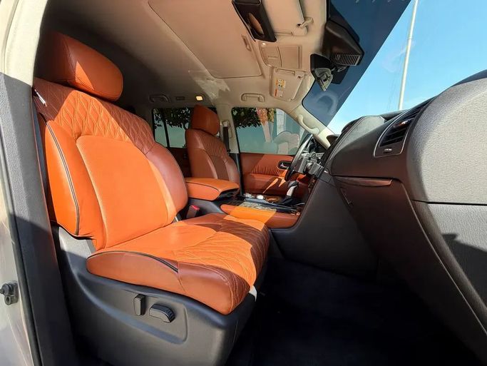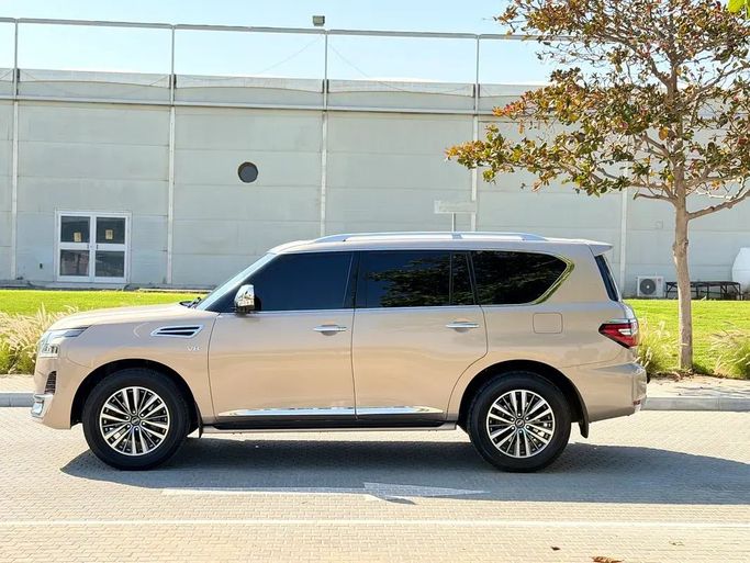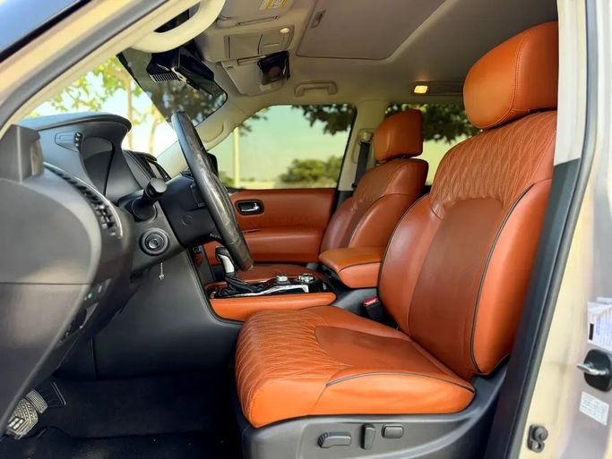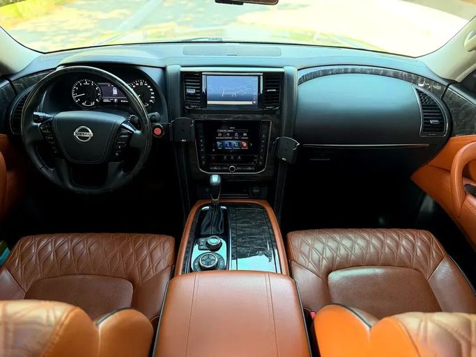 This 2021 Nissan Patrol VI (Y62) Facelift 2 is a GCC-spec, one-owner SUV finished in bronze. Under the long hood sits a 5.6-liter petrol V8 producing 400 horsepower, paired with a smooth automatic transmission and all-wheel drive for confident performance on roads and light off-road conditions. With 165,000 kilometers on the clock, it offers substantial presence and proven durability, while the practical 5-door layout provides everyday versatility and a comfortable cabin. The facelift updates bring refreshed styling and controls, contributing to a more modern feel inside, a