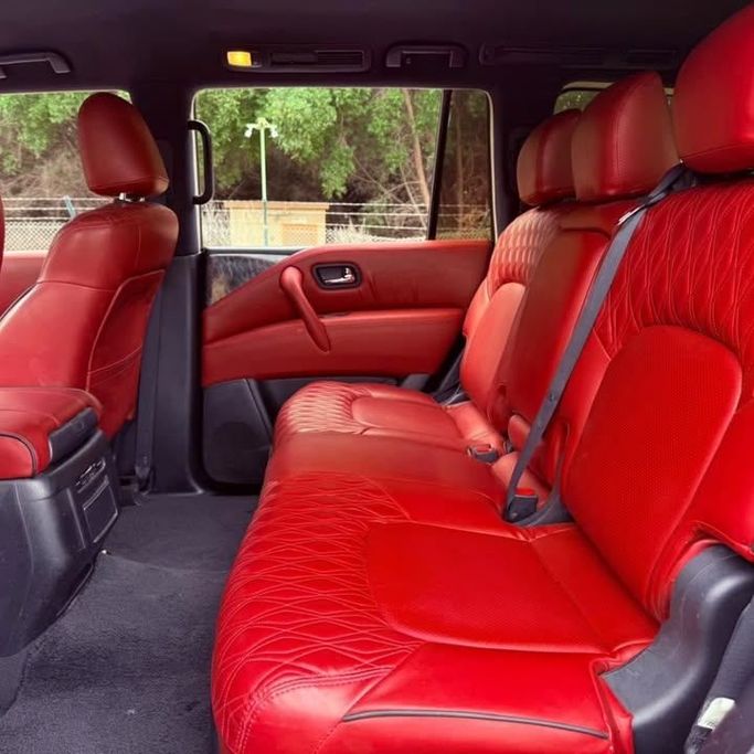 Nissan Patrol platinum 8 cylinder Model year 2014 Transformer from outside and inside 2024 Khaliji Star roof + refrigerator Leather seats +cruise control Rear camera + electric bear Android touch screen Apple CarPlay Without any breakdowns In very excellent condition Walking 224,000 MyService is ready to register AED 54,000 is required