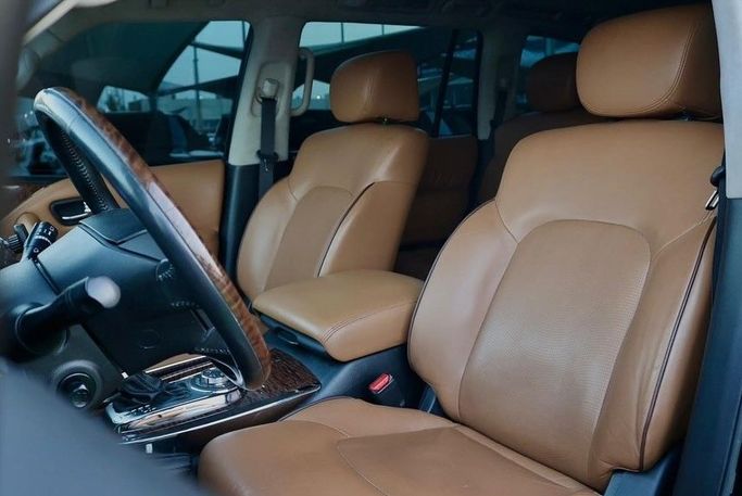 NISSAN PATROL SE V8 2016 PLATINUM Nissan Patrol Platinum V8 small engine volume, year 2016, mint condition without accidents, full option package #1, black interior with saffron-colored leather seats, panoramic roof, Alcantara headliner, three screens, five cameras, parking sensors, electric tailgate, navigation system, rear DVD screens, cruise control, seat cooling and heating, touchscreen control panel with LED display, top specifications. Mileage: 346,000 km