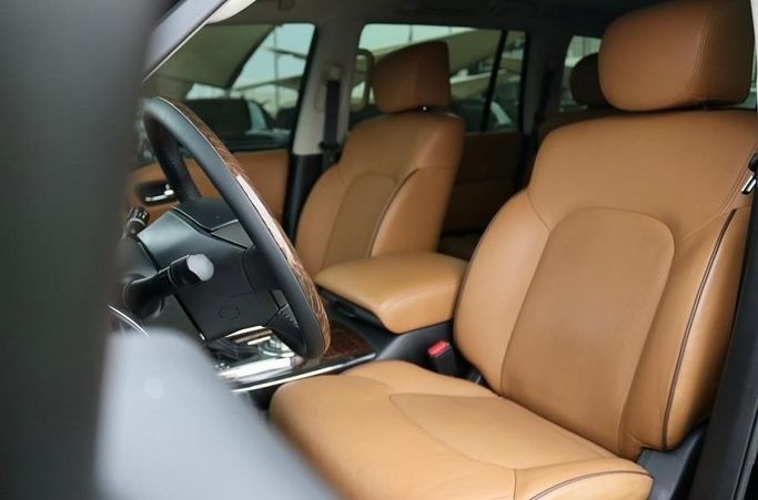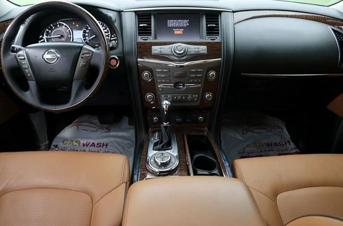 Nissan Patrol Titanium 2016 For sale: Nissan Patrol Titanium, model year 2016, featuring a powerful V8 engine. The vehicle is in excellent condition and has been maintained by an official service, with no accident history. Key features include: - Exterior color: black - Interior: high-quality leather in golden yellow ("zaffarani") - Multimedia screen - Rearview camera - Panoramic roof - Powered trunk closure Mileage: 189,000 km