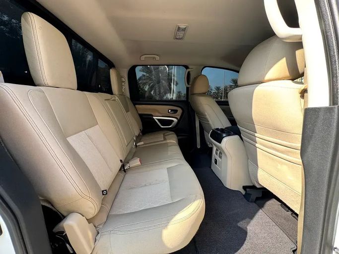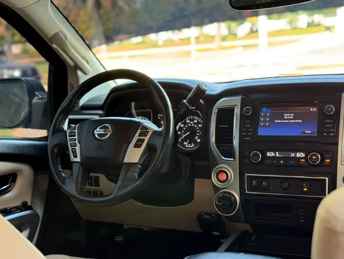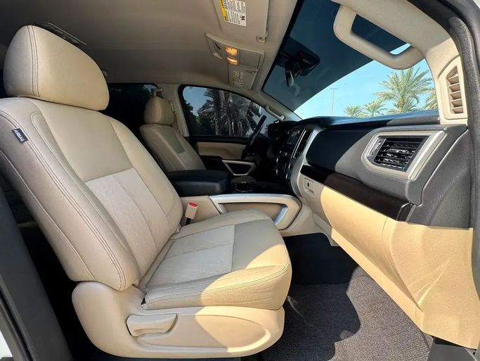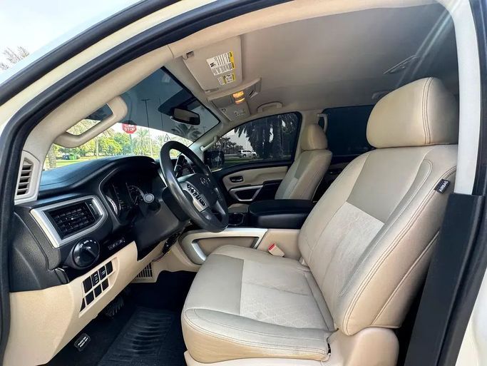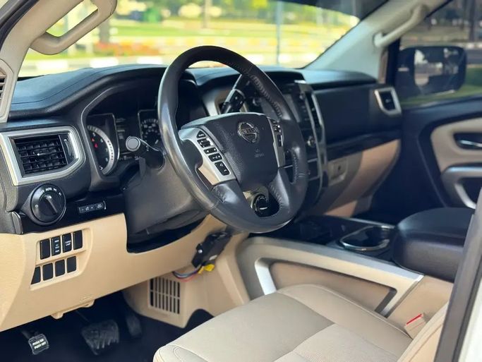 NISSAN TITAN - 2018 - V8 -5,6L 4*4 - VERY GOOD CONDITION للـــــبــــــيــــع النوع : NISSAN TITAN 4*4 سنة الصنع: 2018 وارد الممشى: 146000 الف اللون : ابيض عدد السلندرات: 8 سلندر *_المواصفات والمميزات_* شاشة كاميرا فورويل رنجات كروم صبغ وكالة ما عادا قطعة تجميلي جاهز مسرفي كامل - موقع السيارة : الشارقة This 2018 Nissan Titan II double cab pickup is finished in white and comes from a single prior owner, with about 146,000 miles on the clock. It’s powered by the American-spec 5.6-liter V8 delivering 390 horsepower, paired with an automatic transmission and
