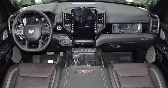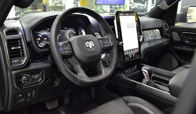 Dodge Ram Rebel 4x4 ( 2025 Model ) in Black Color GCC Specs • Specifications • Exterior Color: Black Interior Color: Black & Maroon Odometer: 100 KM Engine: 6 Cylinder Engine Transmission: Automatic Regional Specs: GCC Specs » 5 Seater Pickup Truck » Bluetooth » Cruise Control » Adaptive Cruise Control » Head Up Display ( H.U.D ) » Digital Rear View Mirror » Android Auto » Fog Lights » HARMAN / KARDON Premium Sound System » 2 Keys Available » Wireless Magnetic Mobile Charger » 4WD Control » Differential / Axle Lock Control » Sport Mode Control » Front Passenger LCD Screen