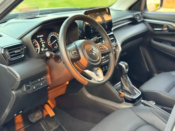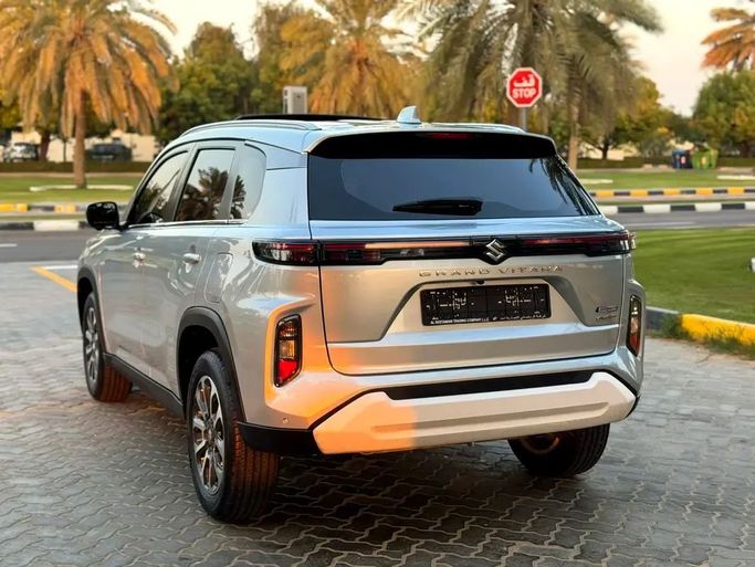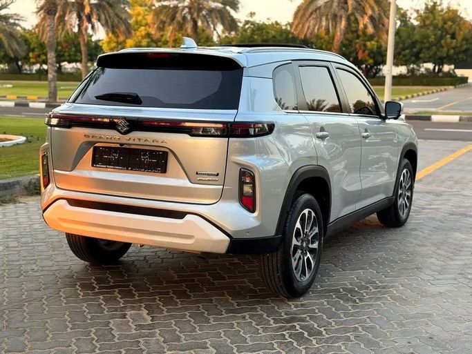 Suzuki Grand Vitara 1.5 Smart Hybrid This 2024 Suzuki Grand Vitara, generation III, is a silver 5-door SUV that blends practical space with a refined hybrid drive. It runs a 1.5-liter hybrid engine delivering 103 hp, paired with an automatic transmission and all-wheel drive for steady performance in diverse conditions. With GCC specifications, it’s tailored for regional use while maintaining a comfortable, quiet interior and agreeable ride quality. Having had a single prior owner and about 19,000 kilometers on the odometer, it shows light, balanced wear for its year. The hy