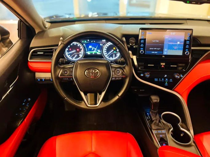 camry model 2022 v6 full option gcc original paint inside red كامري موديل 2022 خليج واحد على واحد فول اوبشن v6 فتحه جلد. ومن الداخل احمر مسرفسه بالكامل وصبغ وكاله وخاليه من الحوادث شرط الفحص ومالك واحد السياره موجوده في سوق الحراج الشارقه معرض اليمامه معرض رقم 03