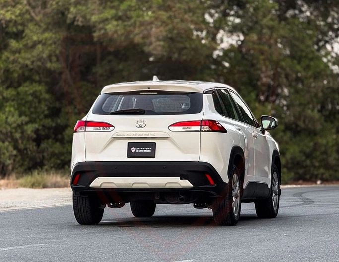 Toyota Corolla Cross Year: 2023 Color: White Specification: GCC Mileage: 45,000 KM Safety Features - ABS - Airbags (front and side) - Front wheel drive - Driver seat belt warning - Passenger seat belt warning - Immobilizer - Door open warning - Child lock - ISOFIX child seat anchors - High mount stop lamp - Electronic brake-force distribution (EBD) - Brake assist (BA) - Speed sensing auto door lock - Anti-theft alarm system - Traction control - Rear fog lamp - Speed alert Exterior Features - Daytime Running Lights (DRLs) -