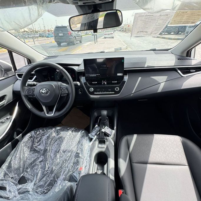 Introducing the 2025 Toyota Corolla, a fresh facelift of the renowned XII (E210) generation, designed to elevate your driving experience without compromising on efficiency or style. This brand-new sedan, finished in a pristine white, showcases Toyota's commitment to innovation and sustainability with its powerful yet eco-friendly hybrid engine. Delivering 140 horsepower, this vehicle promises a spirited drive, perfectly blending performance and exceptional fuel economy. The Corolla's sporty design hints at its dynamic capabilities, while the front-wheel drive and continuou
