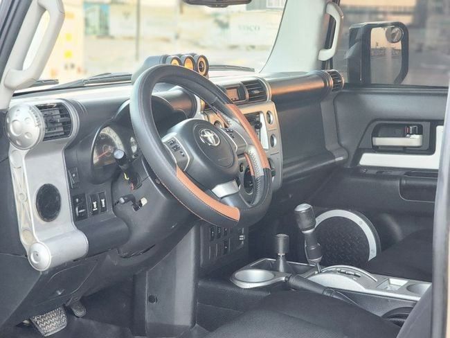 This used 2013 Toyota FJ Cruiser is a beige, five-door SUV powered by a 4.0-liter V6 delivering 260 horsepower, paired with an automatic transmission and all-wheel drive for confident everyday driving and capable off-road performance. As a one-owner GCC-spec vehicle, it presents a rugged boxy silhouette with durable trim that emphasizes practicality and longevity. Inside, the cabin offers comfortable seating and straightforward controls, while the petrol engine provides reliable performance and a balanced ride on highways and rough roads alike. The combination of AWD tracti