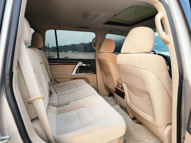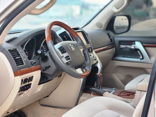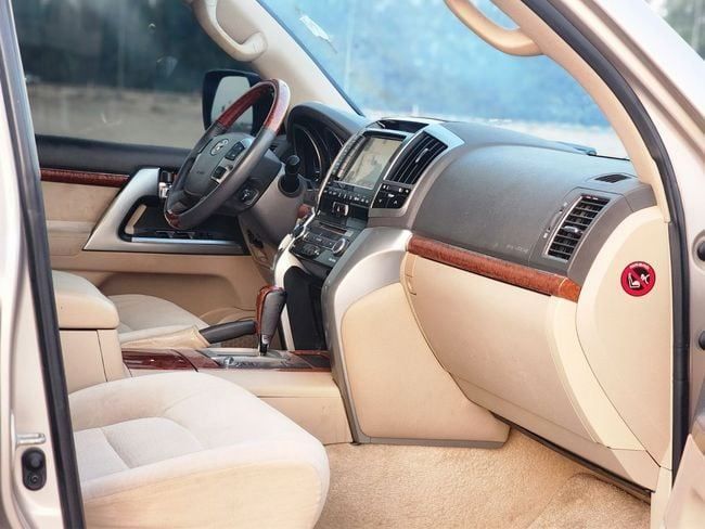 This 2015 Toyota Land Cruiser VX.R V8 5.7 is a used, single-owner SUV finished in a warm golden tone. It rides a 5.7-liter V8 that delivers 381 hp, paired with an automatic transmission and full-time AWD for steady performance on both highway and tougher terrain. With 164,000 km on the odometer, the GCC‑spec model aligns regional familiarity with the Land Cruiser’s long-standing reliability, offering a spacious, quiet cabin for daily use and extended trips. The combination of strong power, a smooth ride, and versatile capability makes it a practical choice for those seeking
