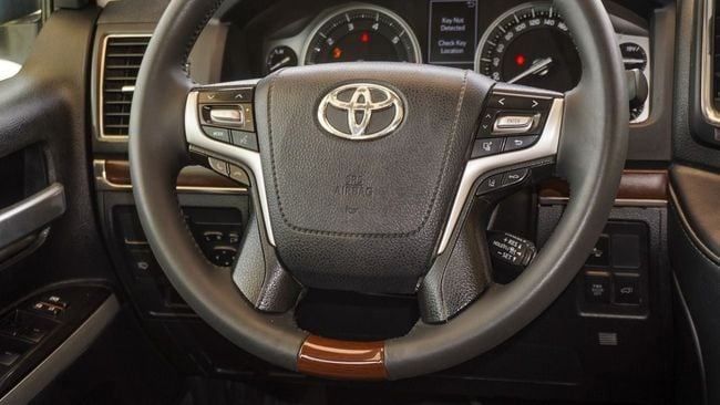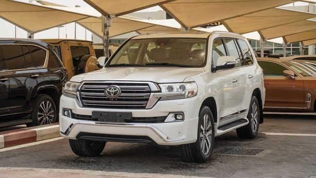 Pre-owned Toyota Land Cruiser VXR 5.7L V8 for sale in Sharjah. White 2017 model, available at Al Fadhl used Cars LLC. This car has automatic transmission, 8 cylinders, 20″ wheels and brown interior. 270,000 km, GCC specs.