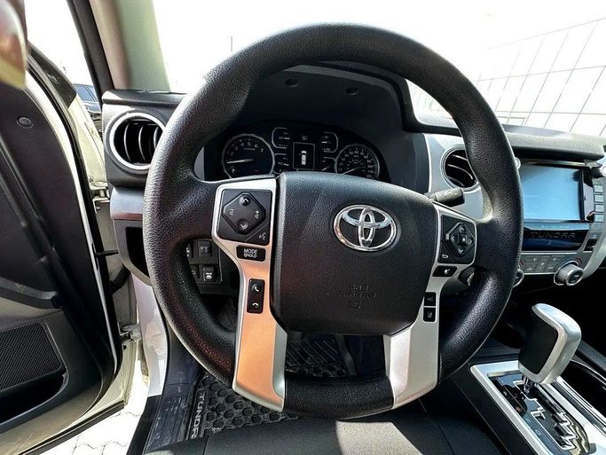 The updated Toyota Tundra II, built in 2020, is a white pickup truck with a two-seat cabin. Under the hood, it features a 5.7-liter V8 gasoline engine with a capacity of 381 hp, paired with an automatic transmission and all-wheel drive. The car was delivered according to American specifications and has had a single owner, with a mileage of 68,000 km. This combination of power and practicality makes it suitable for both everyday use and freight transportation, while Toyota's reliability ensures long-term ownership. - One owner - Mileage: 68,000 km - Engine: 5.7L V8 - Power: