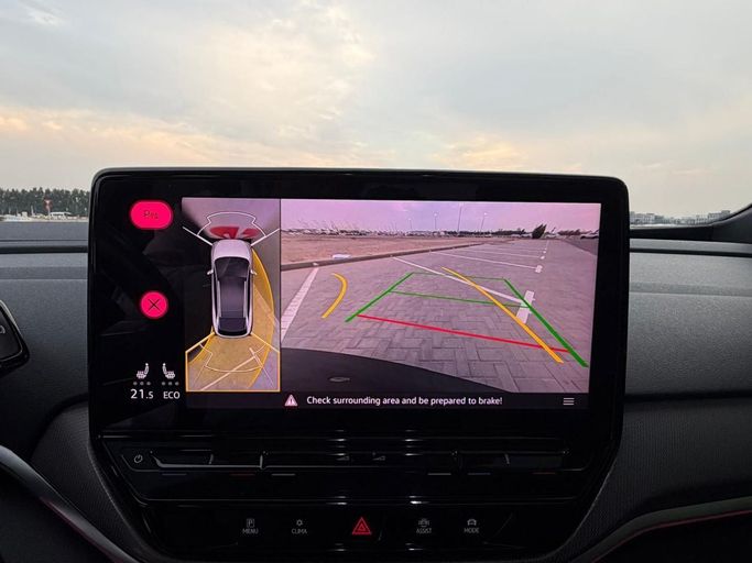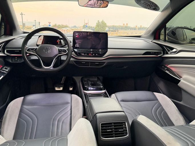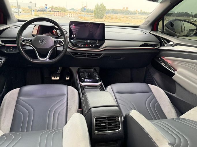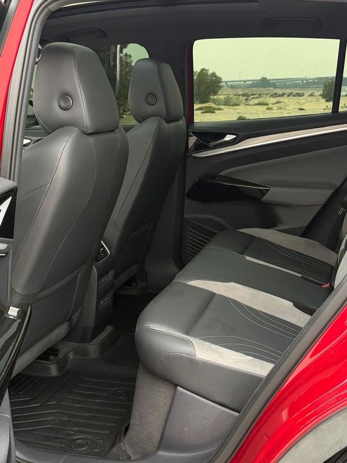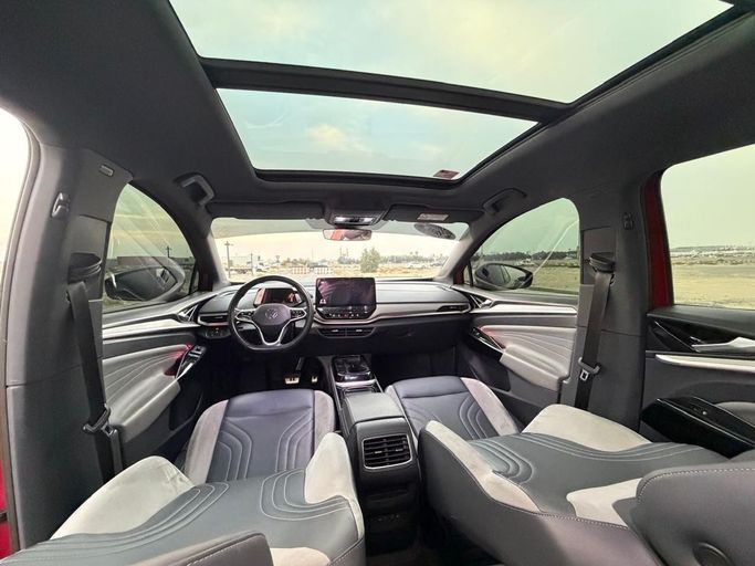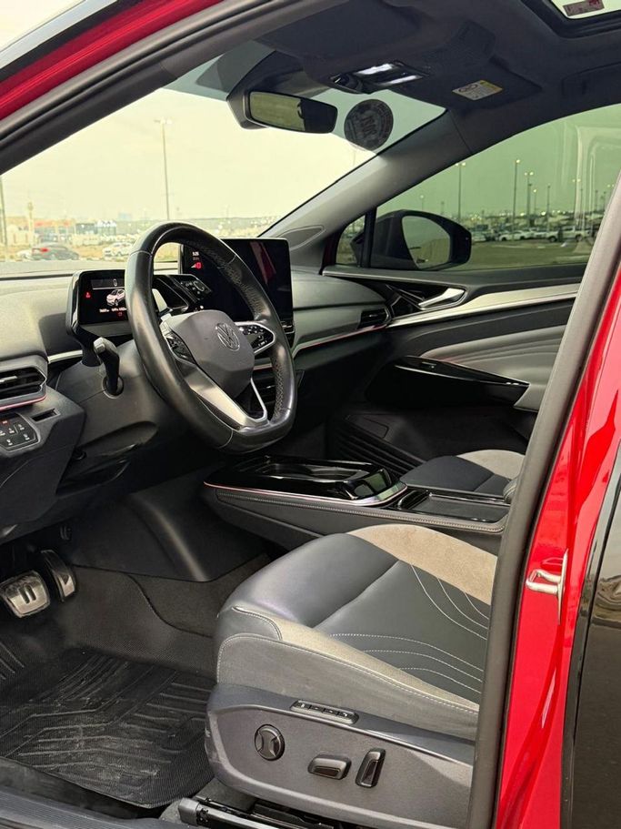 Volkswagen ID4 Cruze Pro, full panoramic sunroof, GCC specs, fully electric, under warranty, 76,000 km, regularly serviced, 299 hp, 82.0 kWh battery, 410 km range on a single charge, two original keys, 360-degree mirrors, blind spot monitoring, 5 seats, electric leather seats.