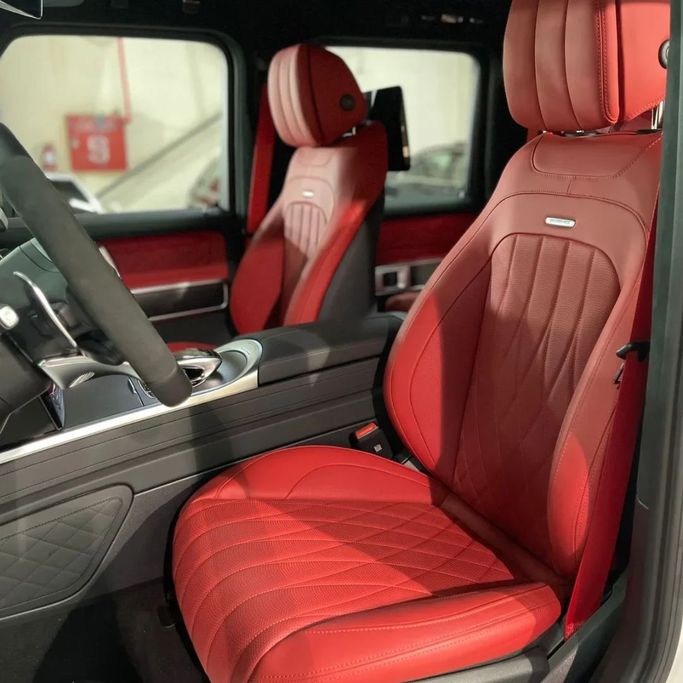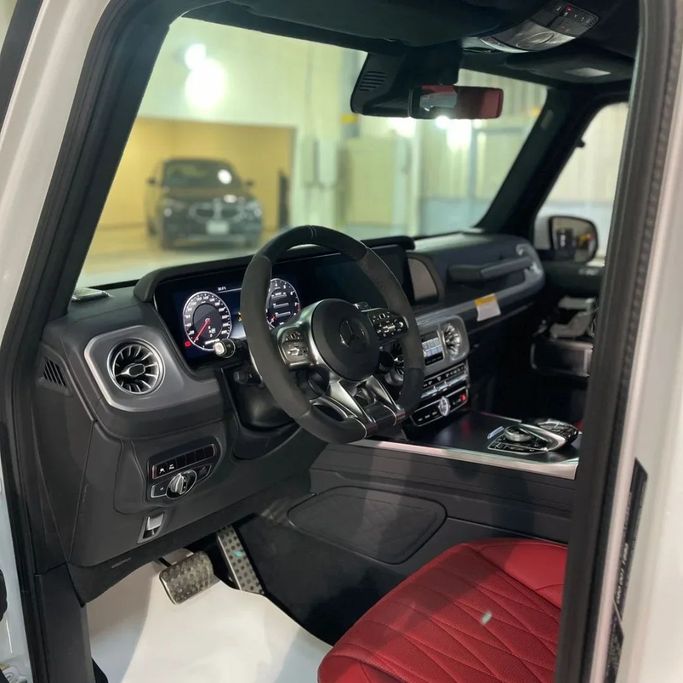 The 2024 Mercedes-Benz G-Class AMG in white combines the unmistakable presence of the G-Class with the performance character of the 63 AMG version. This five-door SUV is powered by a 4.0-litre V8 petrol engine producing 585 hp, paired with an automatic transmission and all-wheel drive for confident traction and strong, controlled performance in a wide range of conditions. As a new example from the II (W463) generation, it brings together the rugged, iconic shape of the G-Class with the refinement and power expected from AMG, making it a compelling choice for someone who wan