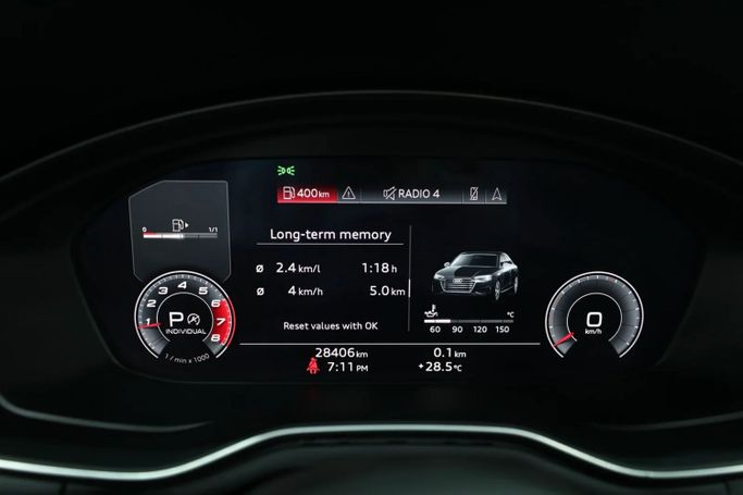 Audi A4 40 TFSI S-line Model : 2020 Odometer : 28,406 Kms Warranty : 3rd Party warranty ( 2 Years) Specification : Korean Cylinders : V4 2.0L