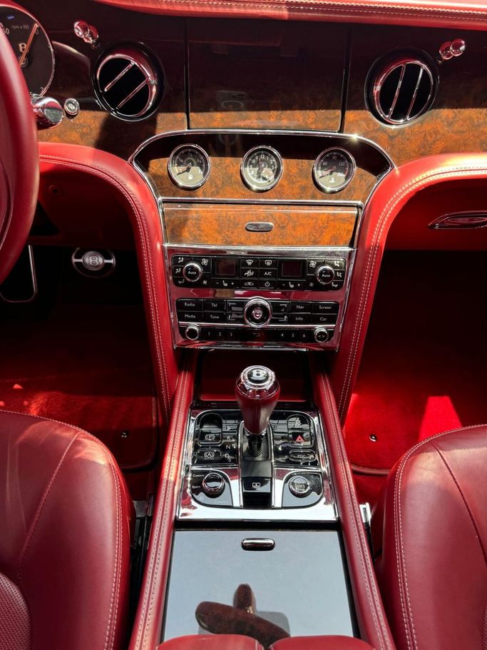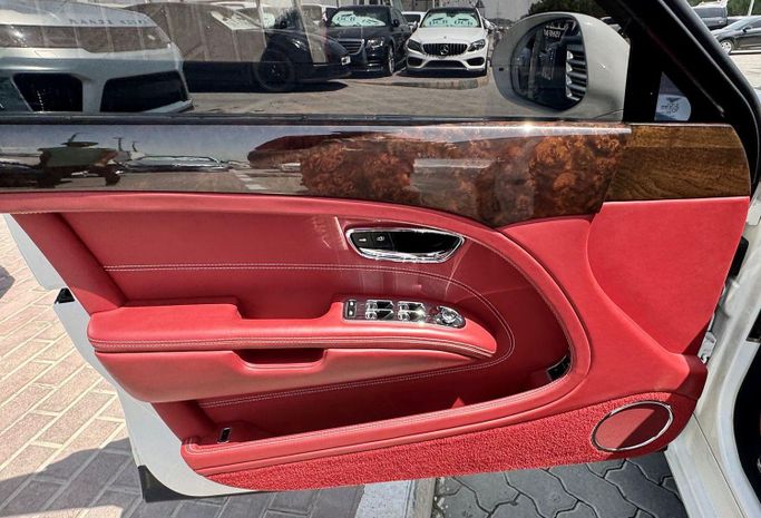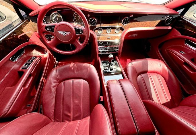 This 2013 Bentley Mulsanne II is a refined used luxury sedan finished in a deep red exterior with a stately presence and classic Bentley silhouette. Under the long bonnet sits a 6.8-liter petrol V8 delivering 512 horsepower, paired with an automatic transmission and rear-wheel drive for a composed, quiet ride. The GCC-spec model includes climate and comfort refinements suited to regional conditions, while the cabin emphasizes craftsmanship with hand-stitched leather, fine wood veneers, and sound insulation that keeps road and wind out of the cabin. With a single previous ow