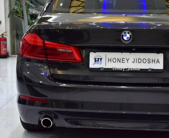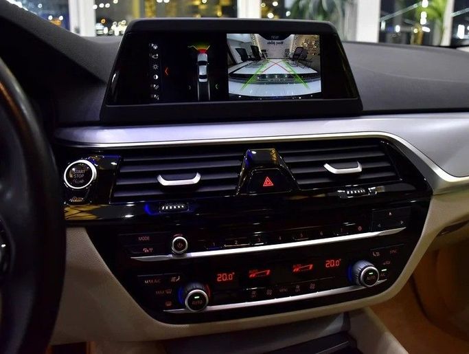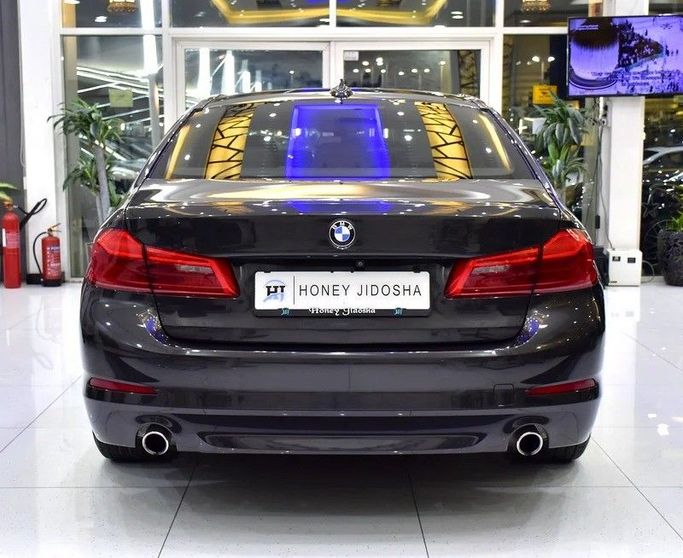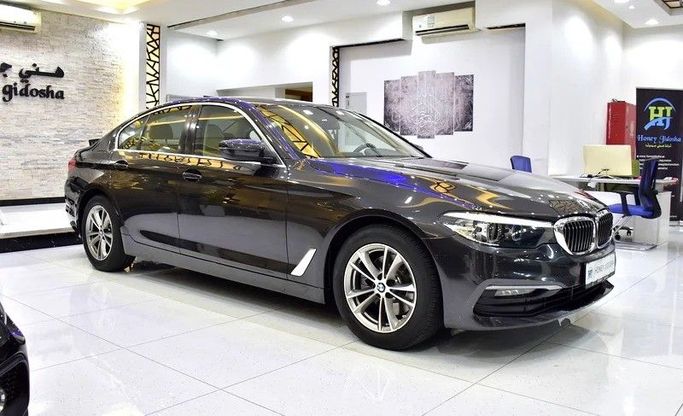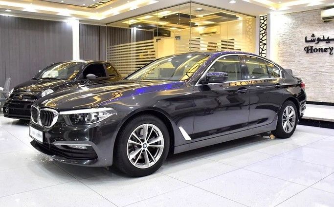 BMW 520i 2020. Grey exterior, beige leather interior. GCC Specs, 139,000 km. Bluetooth, cruise control, sunroof, drive modes, camera, power leather seats, climate, parking sensors, digital dash, alloy rims, remote key, push start, FM/USB/CD/MP3. Dealer: Honey Jidosha Motors. Price: AED 69,999. Finance AED 1,370/mo 5 yrs.