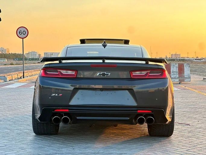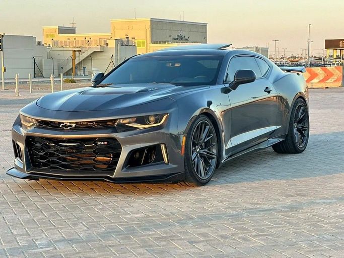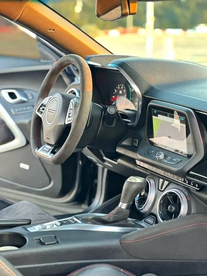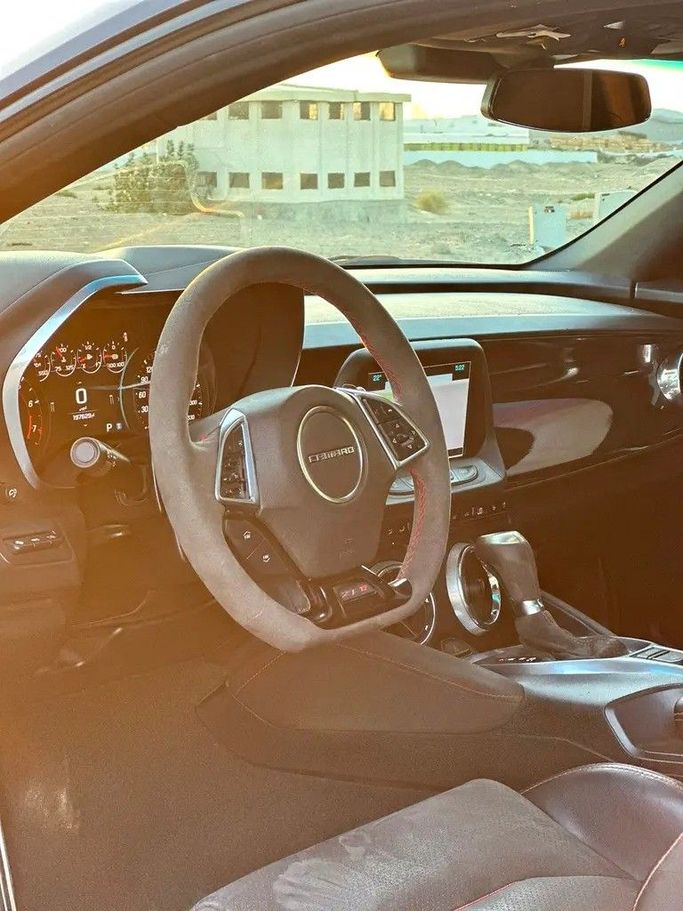 This used 2018 Chevrolet Camaro VI Facelift Coupe presents a sleek grey profile with a bold, modern stance. Under the hood sits a 6.2-liter V8 delivering around 650 horsepower, paired with an automatic transmission and rear-wheel drive for a responsive, high-performance feel. The GCC-spec model comes with a straightforward maintenance history from a single owner, and its 197,000 km on the clock reflects steady use rather than neglect. Inside, the driver-focused cockpit blends comfort with a performance edge, offering supportive seating and clear controls that suit both dail