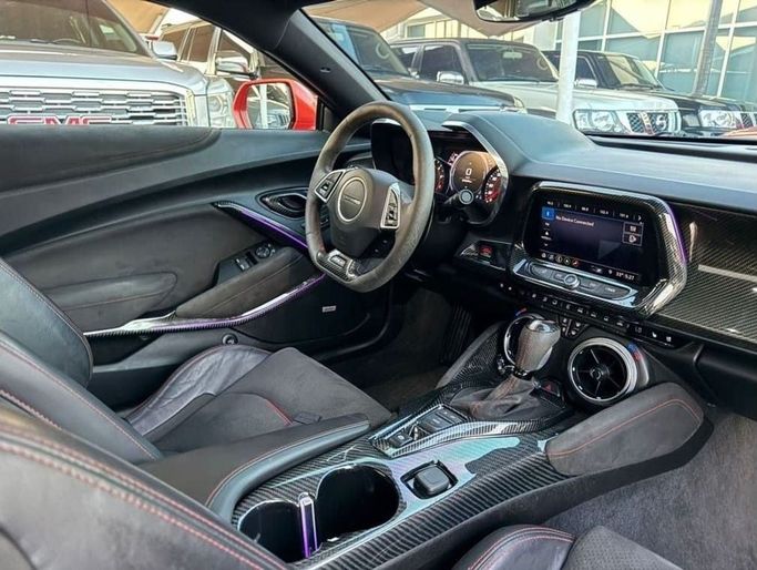 CHEVROLET CAMARO ZL1 GCC 2019 Service history Original paint Zero accidents Full option Full carbon fibre شيفروليه كمارو ZL1 خليجي 2019 تشييكات الوكالة صبغ وكالة بحالة الوكالة فل أوبشن فل كاربن فايبر بدون حوادث أو أعطال ضمان (شاصي جير ماكينة) برتقالي داخل جلد اسود واحمر سيتات ريكاريو شاشة، نافيجيشن فتحة سقف بانوراما سنسرات، مسجات وقوف السيارات ليتات LEF كراسي كهربائية نوافذ كهربائية مثبت سرعة تشغيل بصمة دخول بدون مفتاح كاميرا الرجوع للخلف اعلى المواصفات عداد المسافة: 82,000 كم