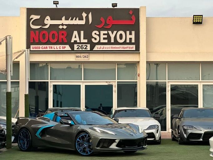 CHEVROLET CORVETTE C8 3LT 2023 Hardtop Convertible Perfect Condition Competition Seats Special Color Full option, Full Carbon Fiber شفروليه كورفيت C8 3LT 2023 سقف كهربا بحالة جدا ممتازة سيتات كومبتشن لون مميز فل اوبشن فل كاربون فايبر ضمان (شاصي جير ماكينة) رمادي داخل جلد ازرق واسود عداد دجيتل شاشة, نافيجيشن بروجكتر امامي سنسرات, مسجات وقوف السيارات عداد الكتروني, LED ليتات سقف قابل للازالة وضعيات قيادة كاميرا خلفية مثبت سرعة كراسي جلدية كهربائية كاميرا الرجوع للخلف اعلى المواصفات عداد المسافة: 23,000 كم