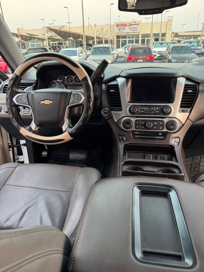 Chevrolet Tahoe 1LT 5.3L 2015 model, imported, fully loaded, clean title Safety - 4WD - Adaptive lighting - Front wheel drive - LED headlights - Performance kit (tuned) - Rear wheel drive - Xenon headlights - Blind spot detection mirror Exterior - Moonroof - Off-road kit - Off-road tires - Performance tires - Premium paint - Roof rack - Sport package - Sport suspension Interior - AUX audio input - Air conditioning - Alarm system - CD player - Cooled rear seats - DVD player - MP3 interface - Power seats with memory