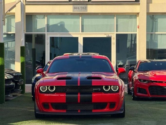 DODGE CHALLENGER HELLCAT SRT GCC 2019 WIDE BODY (717 HP) Service history (under warranty) Perfect condition Full option دودج تشالنجر هيلكات SRT خليجي 2019 تشييكات الوكالة (تحت الضمان) بحالة الوكالة (717 هورس بور) فل اوبشن بدون حوادث او اعطال ضمان (شاصي جير ماكينة) احمر داخل جلد احمر شاشة الكبيرة، نافيجيشن سنسرات، مسجات وقوف السيارات ليتات LED، مثبت سرعة تشغيل بصمة كرسي كهربائي نوافذ كهربائية دخول بدون مفتاح عداد الكتروني كراسي جلدية (تبريد وتدفئة) كاميرا الرجوع للخلف اعلى المواصفات عداد المسافة: 75,000 كم