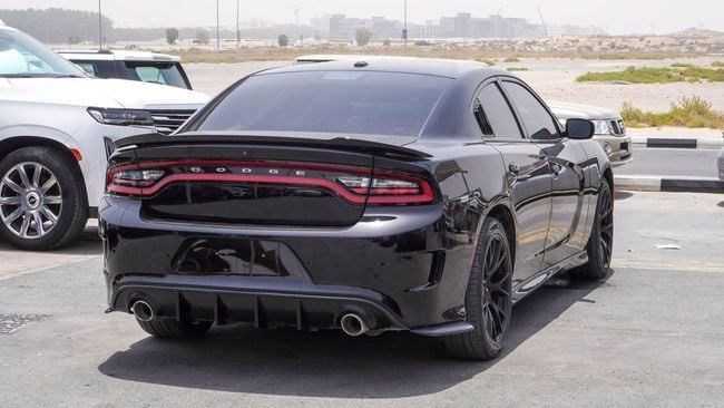 Pre-owned Dodge Charger SRT 5.7 L V8 for sale in Sharjah. Black 2020 model, available at Al Nujoom Al Malakiah Used Cars. This car has automatic transmission, 8 cylinders, 20″ wheels and red interior. 181,585 km, GCC specs.